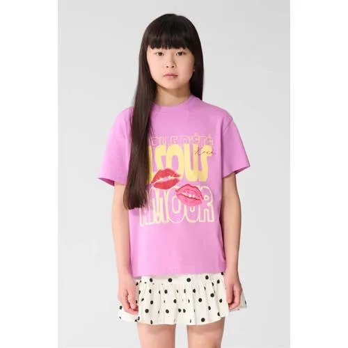 Het paarse T-shirt voor meisjes van Shoeby met 'Bisous Amour' artwork geeft elke outfit een speelse uitstraling. De lila kleur valt meteen op en de tekstprint met illustratie zorgt voor een vrolijk detail. Door de regular fit, korte mouwen en ronde hals voelt het shirt ontspannen en makkelijk aan voor elke dag.Details die elke dag mee kunnen Gemaakt van 100% katoen, dat zacht aanvoelt en prettig ademend is Lila kleur met opvallende 'Bisous Amour' tekst en speels artwork Regular fit met rechte mouwen voor een comfortabele pasvorm Ronde hals die mooi aansluit zonder strak te zitten Low-stretch stof die goed in model blijft, ook na vaak wassen Geschikt voor peuter, kleuter, schoolkind en tiener door de brede maatboogMakkelijk combineren in de kinderkastDit T-shirt past net zo goed op een stoere denim als op een zwierig rokje. Voor school, een speelafspraak of een dagje weg, het shirt is snel aangetrokken en zit de hele dag comfortabel. De lila tint laat zich makkelijk combineren met basiskleuren zoals blauw, wit en grijs.Shoeby: eigentijdse stijl voor kidsShoeby ontwerpt kinderkleding die aansluit bij de laatste stijlen en tegelijkertijd praktisch blijft in het dagelijks leven. De collecties zijn zo gemaakt dat kids vrij kunnen bewegen, terwijl de prints en kleuren zorgen voor een moderne, speelse look.Een zachte basic waar kinderen elke dag weer graag naar grijpen.