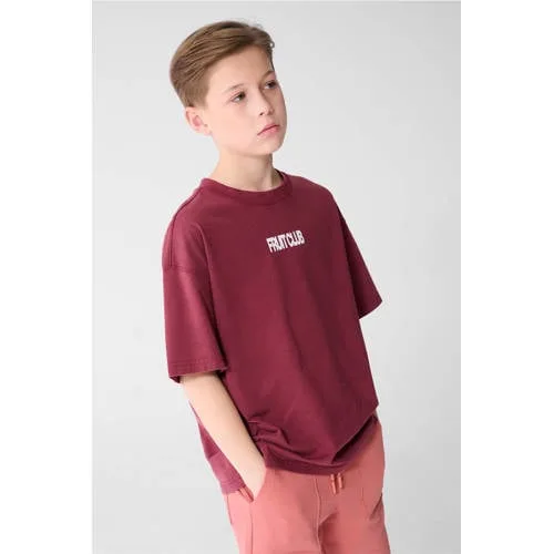 Het Fruit Club Artwork T-shirt in donkerrood past goed bij een ontspannen stijl voor elke dag. Dit donkerrood T-shirt voor jongens heeft een relaxed fit die ruim valt en veel bewegingsvrijheid geeft, ideaal voor schooldagen, buitenspelen of een weekendje weg. De gladde stof van 100% katoen voelt zacht aan op de huid en draagt prettig, ook als het wat warmer is. De korte mouwen en ronde hals maken het een praktisch basisitem, terwijl het artwork aan de voor- en achterkant het shirt een herkenbare uitstraling geeft.Praktische details van dit T-shirt Gemaakt van 100% katoen voor een zachte, ademende touch Relaxed fit met middel lengte voor een comfortabele, ruime pasvorm Korte mouwen en ronde hals, geschikt voor elke dag Artwork met printopdruk en backprint aan de voor- en achterkant Low-stretch kwaliteit die vormvast blijft tijdens het dragen Wasbaar op 30 graden, makkelijk in het onderhoud Geschikt voor peuter en kleuter, schoolkind en tienerMakkelijk combineren in elke outfitDit donkerrode shirt past goed bij een jeans, een comfortabele jogpant of een korte broek. Onder een open hoodie of overshirt komt het artwork extra goed uit. Zo ontstaat in een paar stappen een complete, alledaagse look.Shoeby stijl voor kidsShoeby biedt eigentijdse kindermode met aandacht voor pasvorm en draagcomfort. De collecties sluiten aan op de laatste trends, zodat kinderen kleding dragen die goed zit en past bij het modebeeld van nu.Een T-shirt dat in veel outfits terug kan komen.