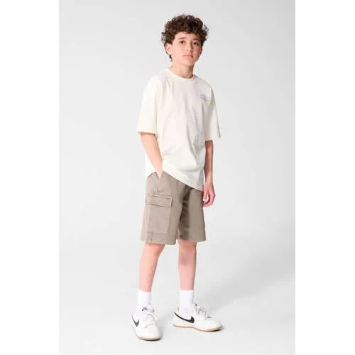 Dit jongens T-shirt van Shoeby is een praktische basic met een stoer accent. De ecru kleur combineert makkelijk met allerlei broeken en shorts, terwijl de backprint aan de achterkant zorgt voor een opvallend detail. Door de middel lengte en de korte mouwen is dit shirt passend voor veel momenten op de dag.Comfortabele basic met stoere details Gemaakt van 100% katoen, wat zacht aanvoelt op de huid Ecru kleur die eenvoudig te combineren is met andere items Low-stretch materiaal voor een vormvast T-shirt Ronde hals die prettig aansluit zonder strak te zitten Korte mouwen en middel lengte voor dagelijks draaggemak Backprint op de rug voor een grafisch accent Geschikt voor peuter, kleuter, schoolkind en tiener Wasbaar op 30 graden voor eenvoudig onderhoudElke dag klaar om in te spelenDit T-shirt past goed bij een jeans, een joggingsbroek of een korte broek. Geschikt voor schooldagen, speelafspraken of een ontspannen weekend. Het katoen draagt prettig, ook wanneer het wat warmer is, zodat je kind zich vrij kan blijven bewegen.Shoeby: eigentijdse kinderkledingShoeby staat bekend om kinderkleding met een moderne uitstraling en een praktische insteek. De collecties sluiten aan op actuele trends en zijn tegelijk makkelijk te dragen in het dagelijks leven. Zo komen stijl en draagcomfort samen, voor kinderen in elke groeifase.Een veelzijdig T-shirt voor alledaags gebruik.