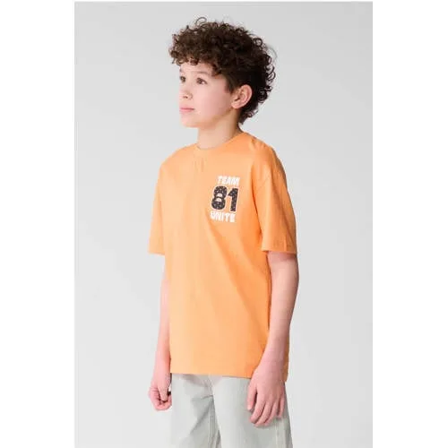 Het Team Unite artwork T-shirt van Shoeby brengt streetstyle en draaggemak samen in één item. Dit oranje jongens T-shirt met backprint heeft een regular fit, korte mouwen en een ronde hals. Op de achterkant valt direct de grote tekstprint op, die de achterkant duidelijk laat opvallen. Het T-shirt is gemaakt van 100% katoen dat zacht aanvoelt op de huid en prettig luchtig is gedurende de dag.Details die elke dag mee kunnen Gemaakt van 100% katoen, voor een zachte touch en ademend comfort Low-stretch kwaliteit waardoor de stof stevig aanvoelt en mooi in vorm blijft Regular fit met middelgrote lengte, passend voor peuter, kleuter, schoolkind en tiener Korte mouwen en ronde hals voor een tijdloze, comfortabele pasvorm Opvallende backprint met tekst voor een herkenbare look Wasbaar op 30 graden, handig voor veelvuldig dragen en wassenVoor schooldagen en speelmiddagenDit oranje T-shirt is geschikt voor elke dag. Het combineert makkelijk met een jeans, korte broek of jogger en kan zowel binnen als buiten gedragen worden. De stevige, low-stretch stof is geschikt voor actief spelen, terwijl de zachte katoenkwaliteit de hele dag prettig aanvoelt.Shoeby stijl voor kidsShoeby maakt kinderkleding met een eigentijdse uitstraling en een draagbare pasvorm. De collecties sluiten aan bij de laatste trends en zijn ontworpen om comfortabel te zijn tijdens het dagelijkse leven van kinderen, van school tot vrije tijd.Een comfortabel T-shirt met backprint dat vaak gedragen kan worden.
