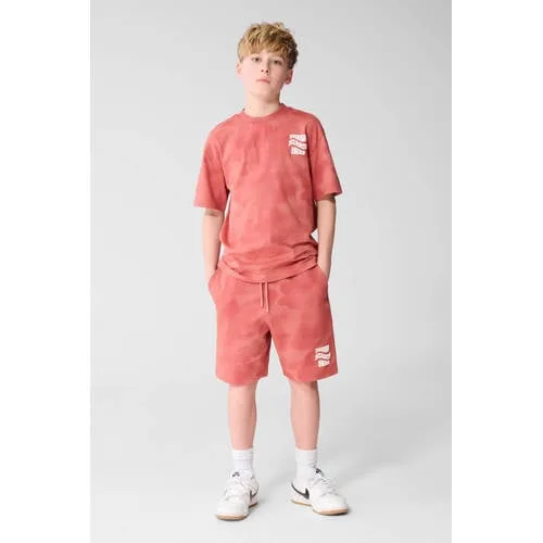 Voor een relaxte streetstyle look is dit oudroze tie-dye T-shirt voor jongens een opvallende keuze. De oversized fit en speelse tekstprint geven elke outfit een stoere, nonchalante uitstraling. Door de roze tie-dye basis oogt het shirt fris en modern, terwijl de gladde stof prettig aanvoelt op de huid. Ideaal voor schooldagen, chillen met vrienden of een vrije dag thuis.Stoere details voor elke dag Oversized fit voor een relaxed silhouet en extra draagcomfort Korte mouwen en ronde hals, makkelijk te combineren met allerlei outfits Oudroze tie-dye dessin met tekstprint voor een trendy streetstyle look Backprint en tekstdetails maken het T-shirt extra opvallend Gemaakt van 100% katoen, voelt zacht en luchtig aan Enkele knoopsluiting bij de hals voor makkelijk aan- en uittrekken Geschikt voor peuter en kleuter, schoolkind en tiener matenMakkelijk te stylen streetstyleDit T-shirt past goed bij een donkere jeans, cargo broek of korte broek. Sneakers eronder en je kind is klaar om te gaan. Door de oversized pasvorm zit er genoeg bewegingsruimte in, wat fijn is tijdens spelen, sporten op het plein of gewoon relaxen.Shoeby: mode met gevoel voor kidsShoeby staat bekend om eigentijdse kinderkleding met een duidelijke stijl. In de kidscollecties wordt goed gelet op draagcomfort, pasvorm en stoere details, zodat kinderen zich vrij kunnen bewegen en toch verzorgd voor de dag komen. Dit T-shirt sluit daar perfect op aan en past moeiteloos in een moderne kindergarderobe.Een opvallend, comfortabel shirt dat vaak uit de kast gepakt zal worden.
