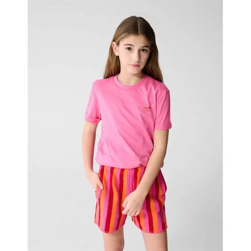 Dit Shoeby T-shirt voor meisjes in roze is geschikt voor dagelijks gebruik. De subtiele voorkant houdt de look rustig, terwijl de backprint aan de achterkant voor een duidelijk accent zorgt. De rechte mouwen en de ronde hals zorgen voor een ontspannen pasvorm die makkelijk combineert met jeans, shorts of een rokje.Details die dit T-shirt net anders maken Kleur: roze, te combineren met zowel neutrale als opvallende tinten Materiaal: gemaakt van 100% katoen voor een zachte touch op de huid Low-stretch kwaliteit, waardoor de stof zijn vorm goed behoudt Korte mouwen met rechte inzet voor een casual uitstraling Ronde hals die dicht langs de halslijn valt zonder te knellen Backprint aan de achterkant voor een extra detail Geen zakken, waardoor het silhouet rustig blijft Verpakking met 1 stuk, geschikt als basic in de kastElke dag draagbaarDit meisjes T-shirt is passend voor dagelijks gebruik, naar school of in het weekend. De katoenen stof is zacht op de huid en kan het hele jaar door worden gedragen, solo in de zomer of met een vest in koudere seizoenen.Shoeby stijl voor kidsShoeby ontwerpt eigentijdse collecties voor het hele gezin. Het merk combineert draagbare modellen met herkenbare details, met aandacht voor bewegingsvrijheid en een nette uitstraling.Een katoenen basic met backprint die eenvoudig te combineren is met verschillende outfits.