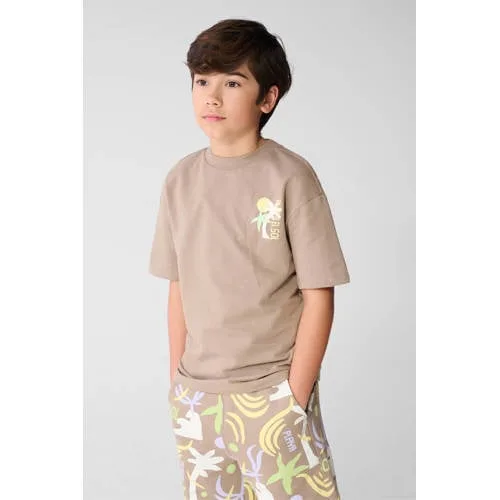Op zoek naar een makkelijk te combineren basic met leuke details voor je kinderkast? Dit taupe jongens T-shirt van katoen van Shoeby is een comfortabele keuze voor elke dag. De rustige kleur maakt het shirt veelzijdig, terwijl de printopdruk aan de voorkant en de stoere backprint zorgen voor een speels accent. Ideaal voor school, thuis of een middag buiten spelen.Comfortabele basic met stoere details Gemaakt van 100% katoen, voelt zacht aan en is prettig om de hele dag te dragen Low-stretch materiaal voor een vormvast T-shirt dat mooi blijft zitten Korte mouwen en een middellange lengte, geschikt voor verschillende seizoenen Ronde hals die makkelijk over het hoofd gaat Voorzijde met printopdruk en opvallende backprint voor extra uitstraling Geen borstzak, waardoor de prints goed tot hun recht komen Wasbaar op 30 graden, handig in het dagelijks wassenIdeaal voor alledaagse outfitsHet T-shirt valt in de maatboog peuter en kleuter, schoolkind en tiener. Daardoor is er eenvoudig voor broertjes in verschillende leeftijden een passende maat te vinden. De taupe kleur combineer je net zo makkelijk met een jeans als met een sportieve short. Het shirt maakt deel uit van een co-ord set, zodat je het ook kunt stylen met bijpassende items uit dezelfde Shoeby collectie.Shoeby: eigentijdse kindermodeShoeby ontwerpt collecties voor kinderen met aandacht voor draaggemak en een stoere uitstraling. De kinderkleding is afgestemd op het dagelijkse leven, van school tot weekend. Met dit T-shirt haal je een veelzijdige basic in huis waar je kind zich vrij in kan bewegen.Een praktische keuze voor elke dag, met net genoeg detail om op te vallen.