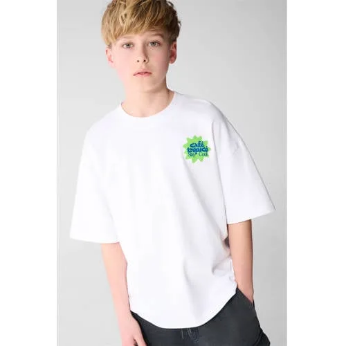 Met dit wit T-shirt voor jongens krijgt elke outfit direct een frisse streetstyle uitstraling. Het Stay Cool T-shirt van Shoeby heeft een oversized fit, korte mouwen en een ronde hals. De gladde stof en stoere logo print geven een moderne look, terwijl de pasvorm ruim en relaxed valt. Ideaal voor schooldagen, weekend en alles daartussenin.Details die het verschil maken Oversized model voor een relaxed en eigentijds silhouet Korte mouwen en ronde hals, makkelijk te stylen onder een hoodie of jasje Glad materiaal dat prettig aanvoelt op de huid Logo print met backprint voor een opvallende streetstyle touch Gemaakt van 100% katoen voor een zachte en ademende kwaliteit Low-stretch stof waardoor het T-shirt mooi in vorm blijft Geschikt voor schoolkind en tiener, passend binnen een trendy collectieCasual look voor elke dagDit T-shirt is makkelijk te combineren met een jeans, cargobroek of short. Door de oversized fit kan het los over een broek worden gedragen of deels in de taille worden gestopt voor een speelse look. Sneakers eronder en de outfit is klaar.Shoeby: eigentijdse mode voor kidsShoeby staat bekend om mode die aansluit bij het dagelijks leven van kinderen en tieners. De collecties volgen de laatste trends, met aandacht voor comfortabele fits en draagbare stijlen. Zo ontstaat kleding waarin kids zich vrij kunnen bewegen en toch helemaal on trend zijn.Een stoer basis T-shirt dat moeiteloos meedraait in elke garderobe.