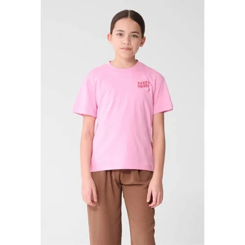 Dit roze meisjes T-shirt van katoen is een fijne basic voor elke dag, met net wat extra door de speelse mixprint. De middel-lange pasvorm en korte rechte mouwen geven voldoende bewegingsvrijheid, of je kind nu speelt, naar school gaat of thuis aan het chillen is. Gemaakt van 100% katoen voelt het T-shirt zacht aan op de huid en is het geschikt voor peuter, kleuter, schoolkind en tiener.Fijne details voor dagelijks draagplezier Gemaakt van 100% katoen, zacht en comfortabel voor de gevoelige kinderhuid Low-stretch kwaliteit voor een vormvaste fit die mooi blijft Ronde hals en rechte mouwen voor een rustige, tijdloze look Middel-lange lengte, makkelijk te combineren met jeans, rok of short Mixprint voor een speels en eigentijds effect Geen sluiting, het T-shirt gaat eenvoudig over het hoofd aan en uit Wasbaar op 30 graden, praktisch in het dagelijkse wasritme Geschikt voor verschillende leeftijden: peuter, kleuter, schoolkind en tienerGemakkelijk te stylen op schooldagen en daarbuitenDit T-shirt past goed bij de kleding van alledag. Combineer het met een comfortabele jeans en sneakers voor school of met een rok en sandalen op warmere dagen. Door de rustige vorm en vrolijke kleur is het een praktische basis in de garderobe, waar kinderen zelf makkelijk een outfit mee samenstellen.Shoeby voor trendbewuste kidsShoeby staat bekend om eigentijdse collecties voor het hele gezin, met veel aandacht voor draagbaarheid en stijl. De kinderkleding sluit aan bij de nieuwste trends, maar blijft toegankelijk voor elke dag. Zo vind je bij Shoeby items die kinderen graag aantrekken en die makkelijk te combineren zijn.Een comfortabel T-shirt dat moeiteloos meedraait in het drukke leven van jouw kind.