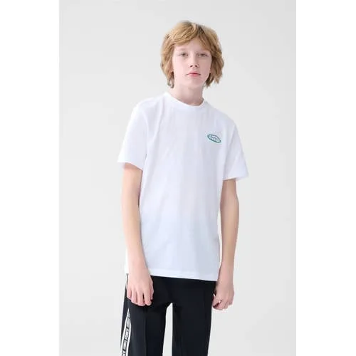 Dit witte T-shirt voor jongens van Shoeby is gemaakt van 100% katoen. Het heeft een ronde hals en korte mouwen. Perfect te combineren met jeans, de non-stretch stof zorgt voor een comfortabele pasvorm.