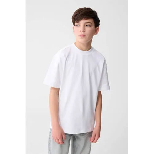 Voor een rustige, maar toch stoere look is dit Shoeby T-shirt jongens een fijne basis in de kledingkast. Het T-shirt heeft een oversized pasvorm, korte mouwen en een ronde hals. De witte kleur en het subtiele label op de voorkant zorgen voor een rustige uitstraling die makkelijk te combineren is met favoriete jeans, shorts of een joggingbroek. De high stretch stof beweegt soepel mee, wat prettig is tijdens spelen, sporten of relaxen.Details die elke dag prettig zijn Oversized pasvorm voor een relaxed en eigentijds silhouet High stretch kwaliteit voor extra bewegingsvrijheid Gemaakt van 94% katoen en 6% elastaan, wat zacht aanvoelt op de huid Ronde hals en korte mouwen, geschikt voor dagelijks gebruik Effen wit met tekstlabel, makkelijk te combineren met verschillende outfits Geen zakken, waardoor de voorkant rustig oogt Geschikt als los T-shirt of in laagjes onder een hoodie of overhemdEen T-shirt voor school, thuis en daarbuitenDit T-shirt is praktisch voor alledaags gebruik. Door de oversized fit zit er genoeg ruimte in het model, wat fijn is tijdens bewegen. De witte kleur past bij sportieve en casual looks. Draag het T-shirt op een jeans met sneakers voor school of combineer het met een korte broek op warmere dagen.Shoeby, vertrouwd in kinderkledingShoeby ontwerpt kleding die goed aansluit bij het dagelijkse leven van kinderen. Comfortabele materialen en eigentijdse pasvormen staan centraal. Zo ontstaat kinderkleding die tegen een stootje kan en er tegelijk modern uitziet.Een eenvoudig te stylen T-shirt dat elke dag weer uit de kast gepakt kan worden.