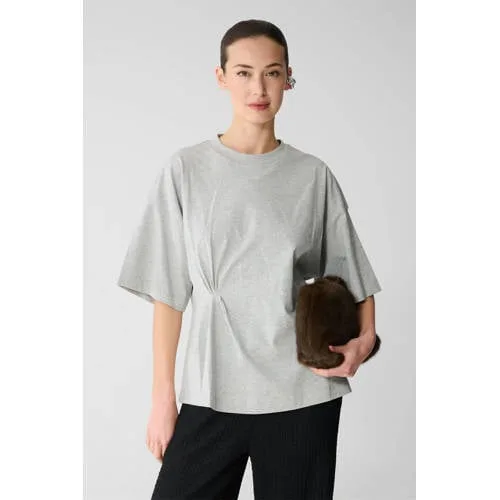 Geef je dagelijkse outfits een ontspannen twist met dit lichtgrijs dames T-shirt met knoopdetail van Shoeby. De relaxed fit, korte mouwen en ronde hals geven een casual uitstraling, terwijl het speelse knoopdetail aan de zijkant het model iets meer vorm rond je taille geeft. Het T-shirt valt soepel, sluit niet strak aan en voelt zacht aan op de huid.Zachte stof en doordachte details Gemaakt van 95% katoen en 5% viscose, voor een zachte, ademende en soepel vallende stof Low-stretch materiaal voor een natuurlijke fit zonder strak gevoel Lichtgrijze effen kleur, gemakkelijk te combineren in je garderobe Ronde hals en rechte korte mouwen voor een eenvoudige basis Speels knoopdetail aan de zijkant voor een modern accent Totale lengte van 62 cm bij maat S Wasbaar op 30 graden, geschikt voor dagelijks gebruikRelaxte look voor elke dagDit T-shirt past goed bij je dagelijkse garderobe in de zomer. Combineer het met een jeans of een luchtige rok voor een comfortabele, alledaagse look. De relaxed fit maakt het een praktische keuze voor drukke dagen waarop je je gemakkelijk wilt kunnen bewegen.Shoeby stijl voor elke dagShoeby ontwerpt kleding die goed aansluit op het dagelijks leven. De collecties combineren draagbare pasvormen met moderne details, zodat je je makkelijk kleedt voor werk, thuis of een dagje weg. Met deze top haal je een praktische basic in huis met een moderne uitstraling.Een praktische keuze die je vaak uit de kast zult pakken.