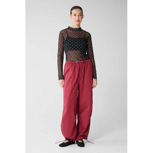 Voor een moderne, vrouwelijke laag in je outfit is deze mesh polkadot longsleeve top zwart een praktische keuze. De top heeft een aangesloten fit die nauw langs het lichaam volgt en een stippenpatroon dat direct opvalt. De transparante mesh stof geeft een licht en luchtig effect, terwijl de opstaande kraag de look een verzorgde uitstraling geeft. Geschikt om solo te dragen met een top eronder of als extra laag onder een blazer of vest.Details van de mesh polkadot top Aangesloten pasvorm met veel stretch voor een soepel gevoel Transparante mesh stof met all-over stippenprint Opstaande kraag voor een moderne, iets hogere halslijn Lange, rechte mouwen die strak langs de armen vallen Zwarte kleur die goed combineert met jeans, rok of pantalon Geen sluiting, de top trek je eenvoudig over het hoofd aan Totale lengte circa 60 cm bij maat S Wasbaar op 30 graden, praktisch in het dagelijks gebruikMesh top voor alledaags en avondgebruikDeze longsleeve uit de Daily collectie is geschikt voor elke dag, maar ook handig als basis voor een avondlook. Combineer met een hoge taille broek of kokerrok en draag er een hemdje onder voor extra bedekking. De elastische mesh beweegt met je mee, zodat de top de hele dag goed blijft zitten.Shoeby: eigentijdse stijl voor elke dagShoeby staat voor mode die geschikt is voor het dagelijks leven, met items die meegaan met trends maar toch toegankelijk blijven. De collecties zijn gemaakt om makkelijk te combineren, zodat je met een paar basisitems en accentstukken steeds weer nieuwe looks samenstelt.Een moderne mesh top die je garderobe makkelijk aanvult.