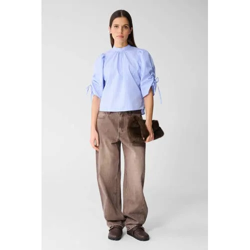 De Pinstripe Blouse Blauw van Shoeby geeft je dagelijkse garderobe een frisse update. Deze lichtblauwe dames top heeft een regular fit en valt met een lengte van 57 cm bij maat S mooi op de heup. Het fijne krijtstreepdessin zorgt voor een rustige, maar stijlvolle look. De stof voelt luchtig aan en blijft goed in model, ideaal voor lentedagen en milde zomerdagen.Lichtblauwe streep en subtiele details Lichtblauwe top met verfijnd krijtstreepdessin voor een frisse uitstraling Regular fit en totale lengte van 57 cm bij maat S voor een toegankelijke pasvorm Pofmouwen met driekwart lengte en plooien voor een vrouwelijke vorm Ronde hals met knoopsluiting en sierveter als subtiel detail Luchtig, soepel materiaal dat prettig aanvoelt en mooi blijft vallen Wasbaar op 30 graden, waardoor de blouse makkelijk te onderhouden isVoor je dagelijkse outfitsDeze lichtblauwe pinstripe top past goed in je dagelijkse garderobe. Draag de blouse op een rechte jeans voor een ontspannen look of combineer met een nette broek voor een verzorgde outfit naar werk of afspraak. De non stretch stof geeft de top een nette vorm, terwijl de pofmouwen zorgen voor een zachte, vrouwelijke touch.Shoeby stijl voor elke dagShoeby staat voor eigentijdse mode die goed aansluit op een actief leven. De collecties zijn ontworpen met aandacht voor pasvorm, details en draaggemak, zodat je kleding kiest waar je je de hele dag fijn in voelt. Met deze Pinstripe Blouse Blauw voeg je een betrouwbaar en stijlvol item toe aan je kast.Een lichte, gestreepte top waar je op kunt vertrouwen op drukke en rustige dagen.
