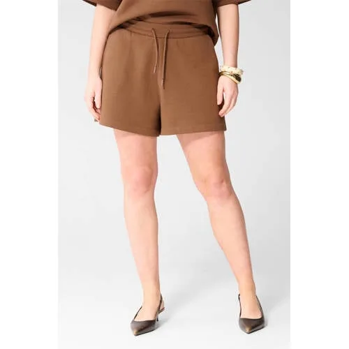 Voor ontspannen dagen is deze bruine casual short voor dames een praktische basis in je garderobe. De korte broek heeft een wide leg pasvorm die losjes langs je benen valt, wat zorgt voor veel bewegingsvrijheid. De effen bruine kleur laat zich makkelijk combineren met T-shirts, tops of de bijpassende co-ord items uit je kast.Comfortabele details voor elke dag Wide leg model voor een luchtige en ontspannen uitstraling Regular waist met elastische tailleband en koord voor een verstelbare pasvorm Gemaakt van 80% katoen voor een zachte touch op de huid Low-stretch kwaliteit waardoor de short mooi in model blijft Praktische achterzak voor kleine essentials Effen bruine kleur die makkelijk te combineren is Wasbaar op 30 graden, handig in het dagelijkse wasritme Onderdeel van een co-ord set, geschikt om ton-sur-ton te dragenCasual short voor zomerse momentenDeze korte broek uit de Daily collectie is geschikt voor zomerse dagen. Draag de short met sneakers en een losse top voor een casual combinatie, of met een mouwloze blouse voor een wat meer geklede set. Het model is 176 cm lang en draagt maat S, zo heb je een beeld van de lengte en fit.Shoeby voor alledaagse stijlShoeby biedt modieuze items die goed passen in het dagelijks leven. De collecties zijn afgestemd op draaggemak, met aandacht voor fijne pasvormen en kleuren die je makkelijk combineert. Zo voeg je met deze short eenvoudig een praktisch en stijlvol item toe aan je kledingkast.Een korte broek die je gemakkelijk inzet voor verschillende zomerse activiteiten, van stranddag tot stadswandeling.