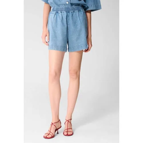 Op zoek naar een korte denim die net even anders is dan standaard blauw? Dit glitter denim short voor dames van Shoeby geeft elke outfit een moderne knipoog. De regular fit met wide leg valt relaxed langs je benen en de korte lengte laat je zomerse look goed uitkomen. Dankzij de elastische tailleband sluit het short comfortabel aan in de taille, terwijl de mid-waist een mooie, natuurlijke balans geeft.Glitterdetails en relaxed model Gemaakt van 100% katoen voor een stevige denimkwaliteit met een authentieke feel Low-stretch denim waardoor de vorm goed behouden blijft Subtiel glitterdessin met strass steentjes voor een moderne, opvallende twist Elastische tailleband voor extra comfort en een ontspannen pasvorm Voorzien van zakken voor praktisch gemak Totale lengte van 38 cm bij maat S Medium blue denim kleur die makkelijk combineert met tops en T-shirtsZomerse looks voor elke dagDit denim short is onderdeel van de 'Daily' collectie en past goed bij zonnige dagen, citytrips en festivals. Draag het met een eenvoudig T-shirt of een cropped top. Er is een co-ord set beschikbaar, zodat je eenvoudig een complete look samenstelt in dezelfde stijl.Shoeby: eigentijdse mode voor elke dagShoeby richt zich op eigentijdse items die je makkelijk combineert in je dagelijkse garderobe. Met aandacht voor pasvorm, details en draagbaarheid biedt het merk kleding die je helpt om op een toegankelijke manier je eigen stijl te laten zien.Een zomers short dat comfort en glitteraccenten combineert in een duidelijke, moderne look.