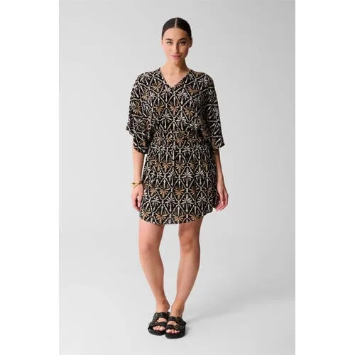 Deze Shoeby jurk heeft driekwart mouwen en een V-hals. Het korte model is gemaakt van viscose. De jurk heeft een non-stretch textuur en rechte mouwen, wat zorgt voor een luchtig gevoel.