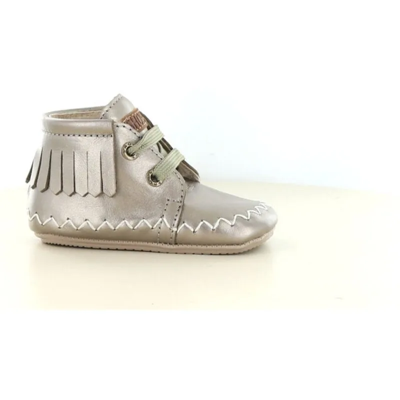 De Shoesme BP25W008 Champagne Gold is de perfecte eerste-stapschoen voor meisjes die stijlvol én comfortabel willen beginnen aan hun eerste stapjes. Gemaakt van soepel hoogwaardig leer in een elegante champagne-gouden tint, straalt deze schoen luxe en zachtheid uit. De speelse franjes en het sierstiksel rondom geven een modieuze, vrolijke touch aan het ontwerp.De flexibele zool stimuleert de natuurlijke afwikkeling van het voetje, waardoor jouw kind op een gezonde manier leert lopen. De vetersluiting zorgt voor een optimale aansluiting en stabiliteit bij elke stap, terwijl de lichte constructie en zachte materialen zorgen voor heerlijk draagcomfort, de hele dag door.Waarom kiezen voor Shoesme eerste-stapschoenen?Shoesme staat bekend om het ontwikkelen van schoenen die speciaal zijn afgestemd op de kwetsbare voeten van kinderen die net leren lopen. Met perfecte pasvorm, hoogwaardige materialen en gezonde ondersteuning biedt dit merk alleen het allerbeste voor kleine avonturiers.