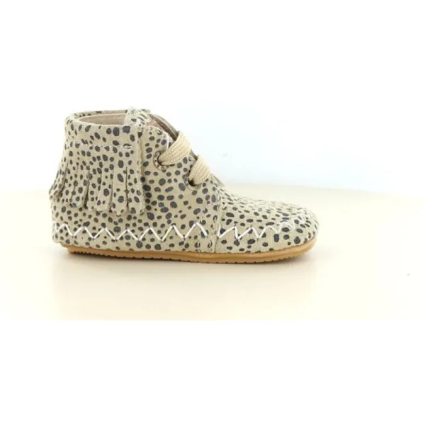 Met de Shoesme BP25W008 Beige Dots zet jouw kleintje haar eerste stapjes in stijl én comfort. Deze schattige meisjesschoen is gemaakt van soepel suède en uitgevoerd in een vrolijk beige met zwarte stippen, speelse franjes aan de zijkant en een opvallend wit stiksel langs de zool. Het ontwerp is niet alleen lief en trendy, maar vooral ook functioneel voor groeiende voetjes.De flexibele zool ondersteunt een natuurlijke voetafwikkeling, waardoor jouw kind op een gezonde manier leert lopen. Dankzij de vetersluiting blijft de schoen stevig om de voet, wat extra stabiliteit en veiligheid biedt tijdens de eerste avonturen. Het lichte gewicht en de zachte materialen zorgen ervoor dat deze schoen de hele dag comfortabel zit.Waarom kiezen voor Shoesme eerste-stapschoenen?Shoesme staat bekend om zijn schoenen die speciaal zijn ontworpen voor de eerste stapjes. Met oog voor pasvorm, steun en bewegingsvrijheid zorgen ze voor een optimale start van de loopontwikkeling.