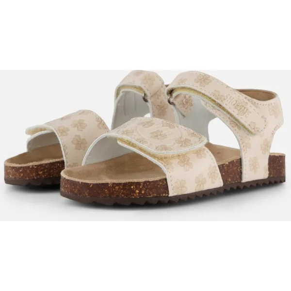 Deze Shoesme sandalen voor meisjes zijn uitgevoerd in een zachte beige tint met een speelse bloemetjesprint, perfect voor zonnige dagen. Het synthetische materiaal zorgt voor een lichte en praktische schoen, terwijl de dubbele klittenbandsluiting het aan- en uittrekken extra makkelijk maakt. De stevige zool en het fijne voetbed maken deze sandalen ideaal voor elke dag, van spelen in de tuin tot een dagje uit.