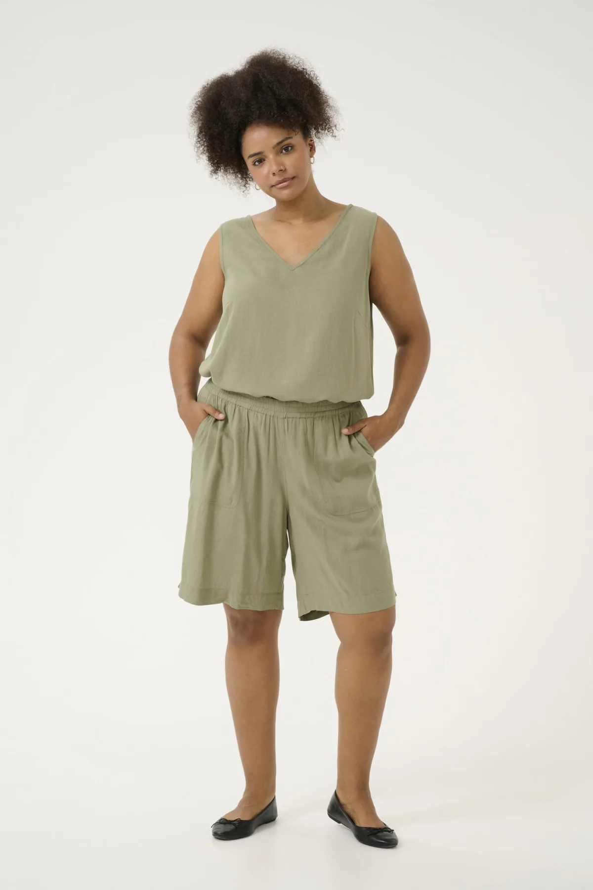 Regular fit,Elastische taille,Boven de knie,Relaxed Fijne was 30°, niet bleken, niet in de droger drogen, Druipnat ophangen in de schaduw, warm strijken max. 150° C, 70% Viscose (LivaEco™),30% Linnen