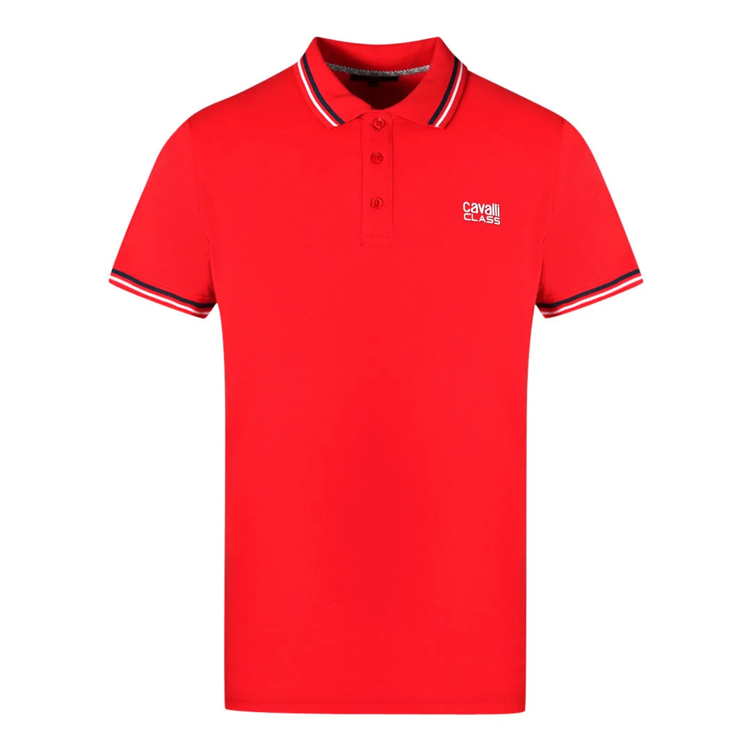 Cavalli Class Dubbel Gestreepte Kraag Witte Logo Rode Poloshirt