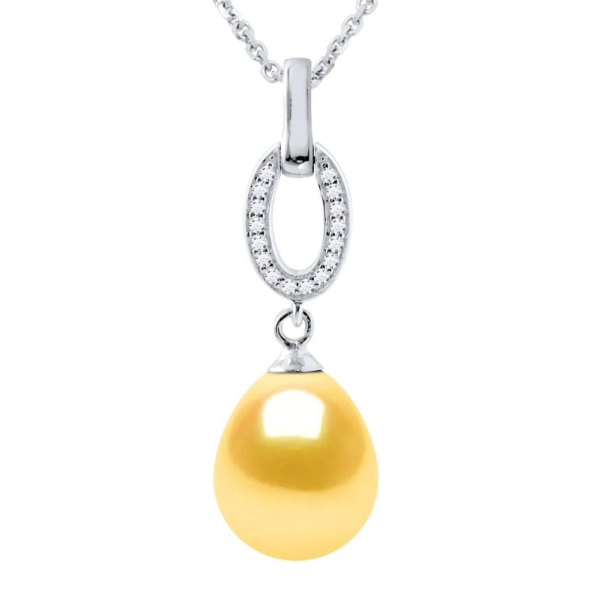 Ketting - Freshwater Pearl 8-9mm pear - zirconia Ring set - Knitwear veroordeelde - 925 duizendste rhodium - Lengte: 42 cm - Wordt geleverd in een koffer met een certificaat van echtheid en een internationale garantie - Al onze juwelen zijn gemaakt in Frankrijk.