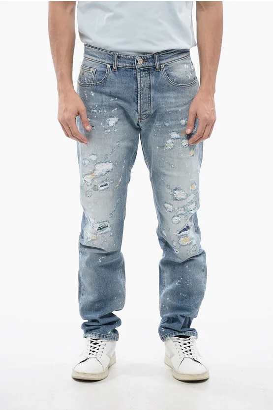 Denim Rules, Lente-Zomer, Lichte wassing, Blauw, 5 zakken, Denim katoen, Vintage effect, Riemlussen, Normale pasvorm, Gemaakt in Italië, Enkelomtrek 18 cm