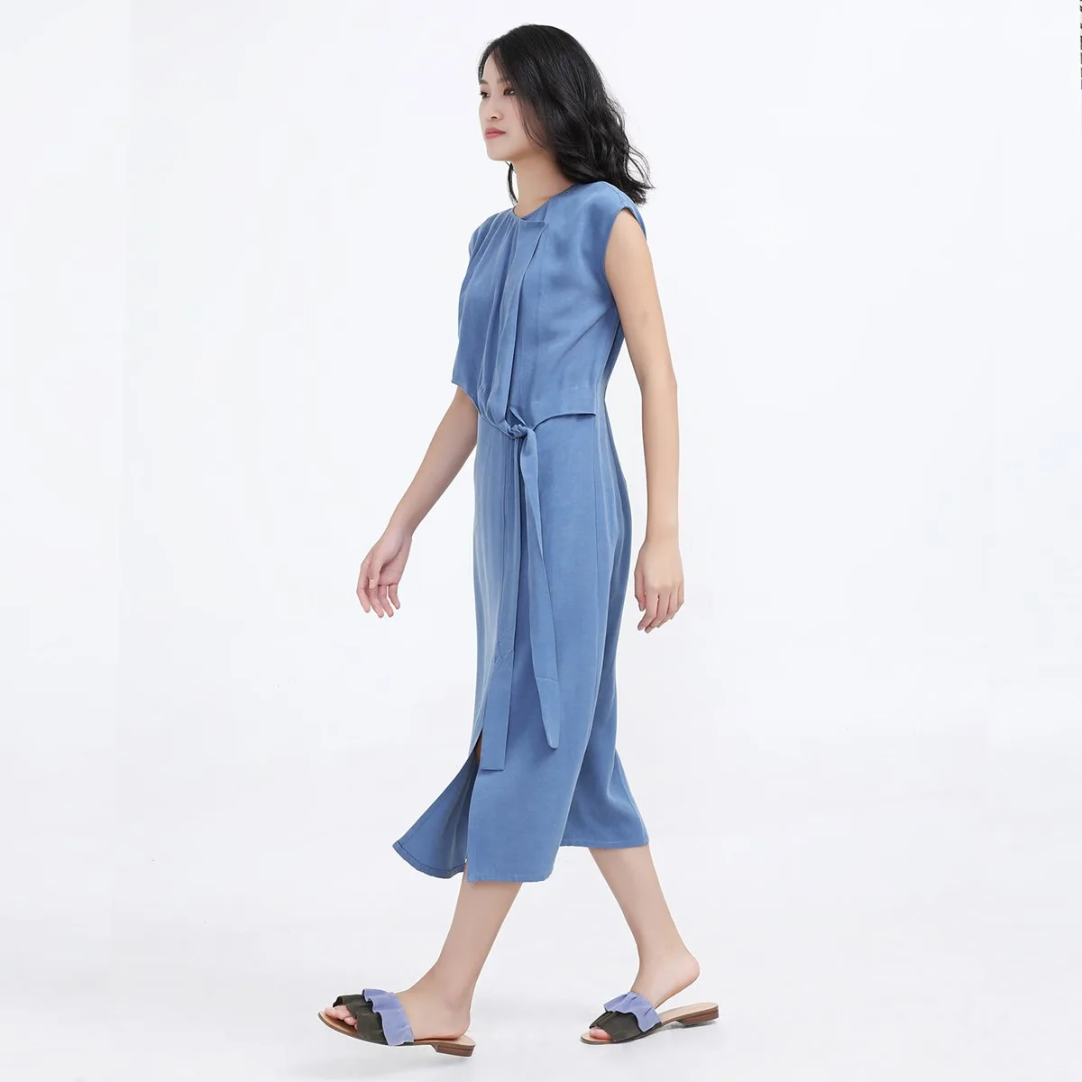 Side Tie minimalistische midi -jurk
