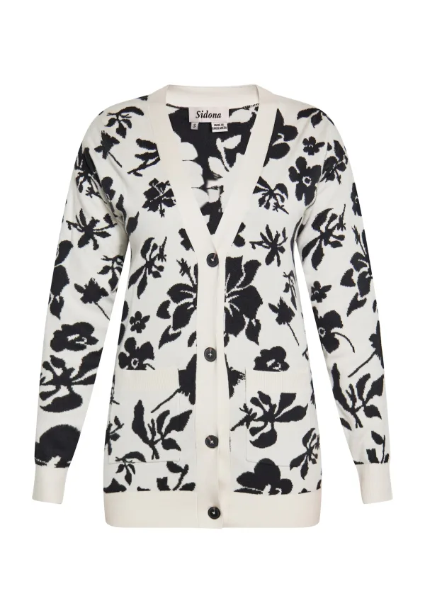 Design: Opgezette zakken; Type sluiting: Knoopsluiting; Materiaal: Knitwear; Halstype: V-hals; Motief: Bloemenprint; Extra's: All-over patroon, Voelt zacht aan; Pasvorm: Normale pasvorm; Armlengte: Lange mouw; Lengte: Normale lengte