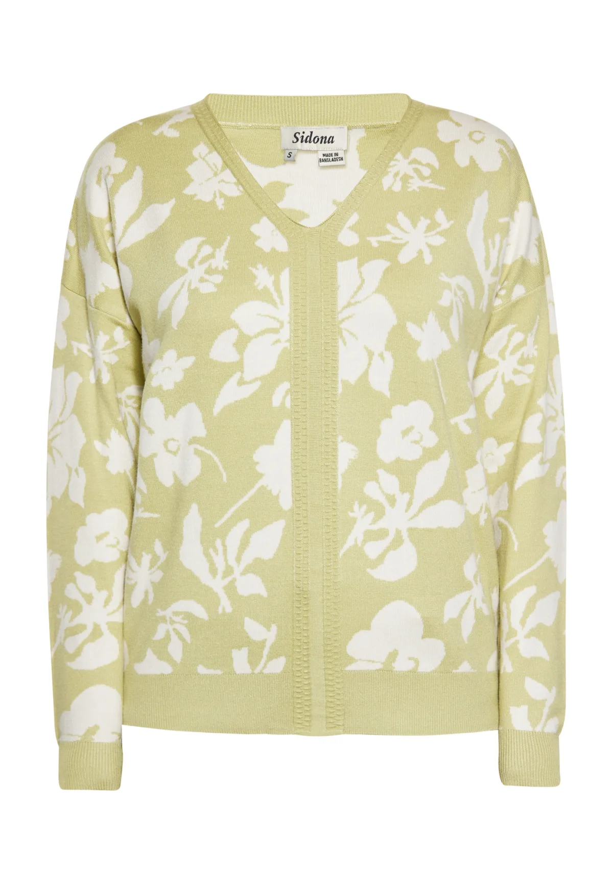 Design: Geribbelde kraag; Materiaal: Knitwear; Halstype: V-hals; Motief: Bloemenprint; Extra's: All-over patroon; Pasvorm: Losse pasvorm; Armlengte: Lange mouw; Lengte: Normale lengte