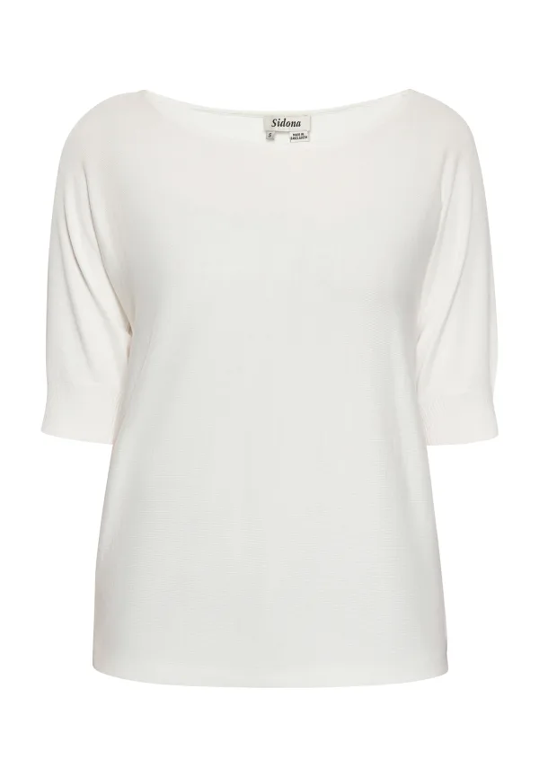 Design: Pofmouwen; Materiaal: Knitwear; Halstype: Boothals; Motief: Effen; Extra's: Op staal naden; Pasvorm: Normale pasvorm; Armlengte: Halve mouw; Lengte: Normale lengte