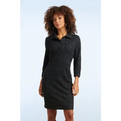“Classic with a modern twist.” Deze Sienna Classic jurk is een tijdloze must-have! Ze heeft een puntig kraagje, 3/4 mouwen en knopen aan de voorzijde. De elegante, getailleerde pasvorm accentueert je vrouwelijke silhouet, terwijl de lengte net boven de knie een speelse, moderne touch geeft. Uitgevoerd in een stevige maar soepele, tweed-achtige stof met een klassieke ruittextuur en subtiele zilveren glitterdraad voor een luxe uitstraling. * Getailleerde pasvorm * Puntige kraag * Knopen voorzijde * 3/4 mouwen * ‘Faux’ steekzakjes * Valt bij een lengte van 1,70 m boven de knie * Let op; de kleur van het product op de video kan afwijken van de daadwerkelijke kleur van het product