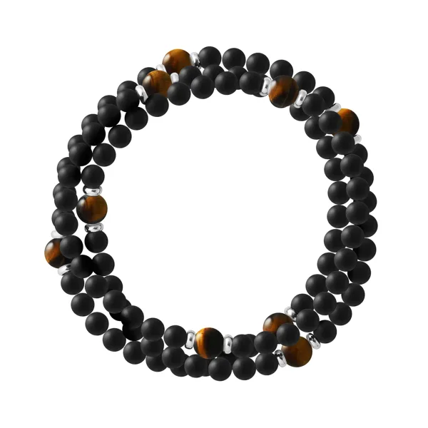 Armband Drie Rijen 9 Steentjes | ZWARTE AGAAFSTEEN - TIGERSTEEN | 925 Duimsilveren Hulsjes | HR® elastisch - Hoge Weerstand | Geproduceerd in onze Franse Werkplaats | Geleverd met onze prestige doos en een garantie- & echtheidscertificaat