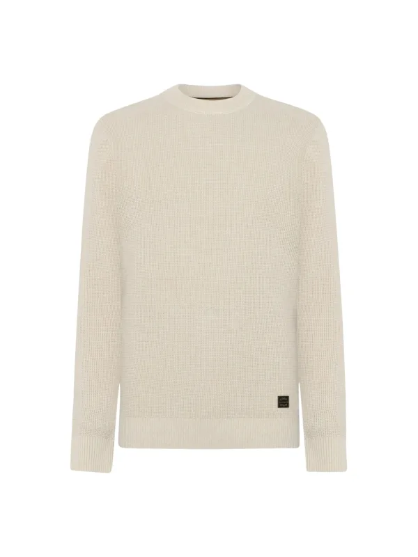 Design: Geribbelde kraag, Rechte zoom; Materiaal: Knitwear; Halstype: Ronde hals; Motief: Effen; Extra's: Fully fashioned, Met textuur; Pasvorm: Normale pasvorm; Armlengte: Lange mouw