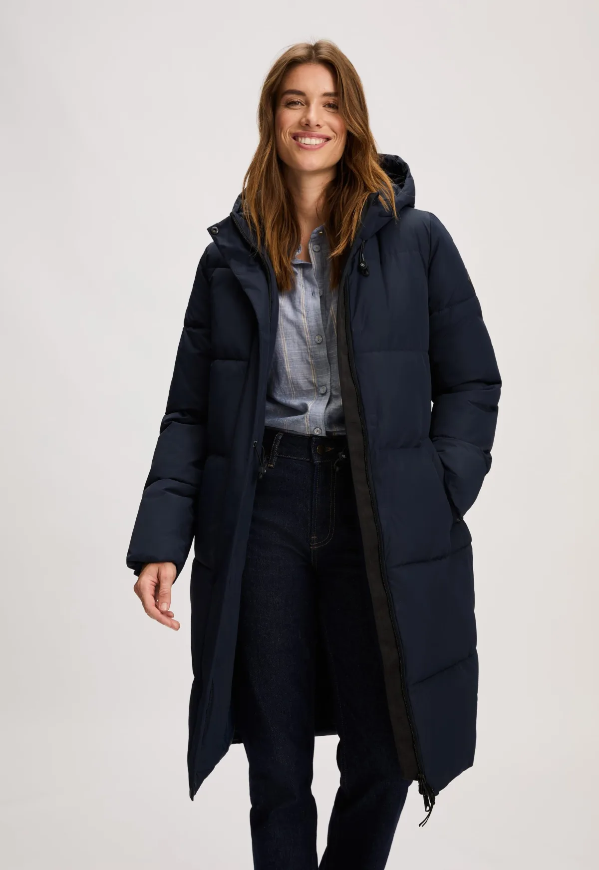Dit is de Base Puffer van het merk Silvercreek. De lange Base Puffer is ontworpen voor wie stijlvol voor de dag wil komen zonder in te leveren op comfort. De wijde quilting met imitatiedons zorgt voor warmte en volume zonder zwaar aan te voelen. Met een waterafstotende coating en een waterkolom van 5000 mm blijf je beschermd tegen wisselvallig weer. De waterdichte 2-weg ritsluiting met magnetische knopen, storm cuffs en verstelbare capuchon bieden extra bescherming tegen wind en kou. Met het koord in de taille geef je de jas moeiteloos een vrouwelijke shape.