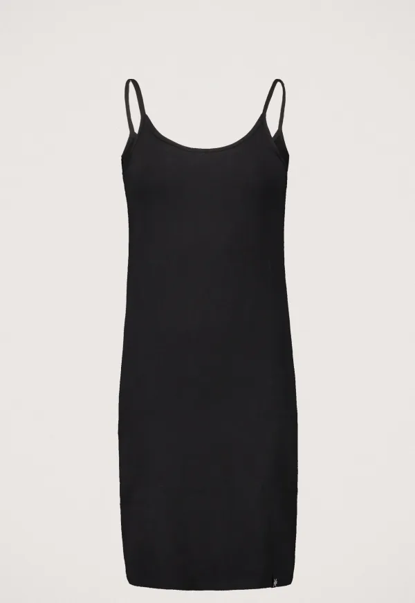 Dit is de Bella Jurk van het merk Silvercreek. De jurk heeft een diepe ronde hals, spaghettibandjes en heeft een Silvercreek logo aan de onderkant.