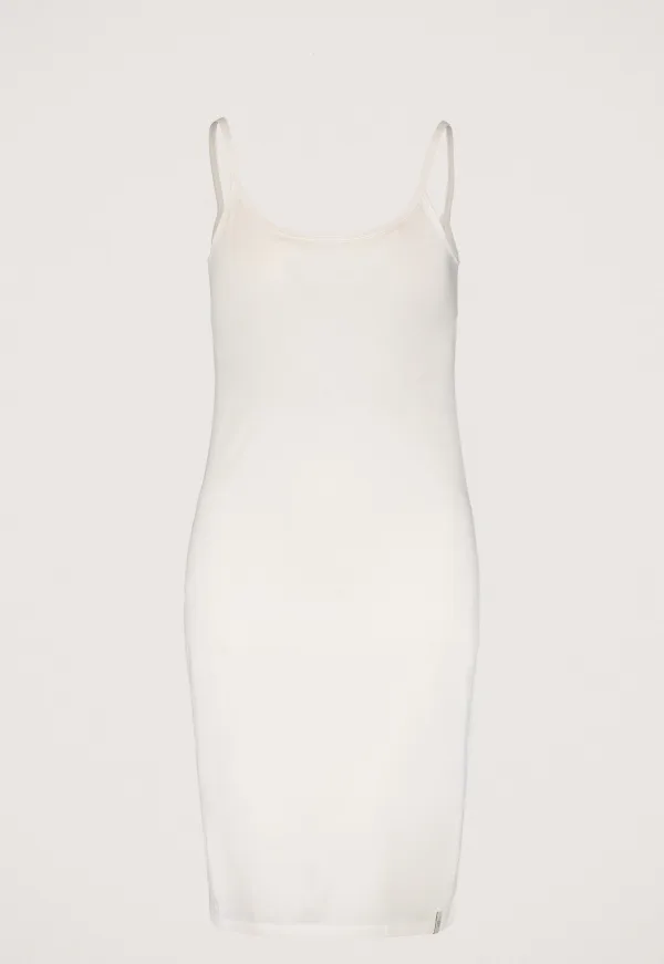 Dit is de Bella Jurk van het merk Silvercreek. De jurk heeft een diepe ronde hals, spaghettibandjes en heeft een Silvercreek logo aan de onderkant.