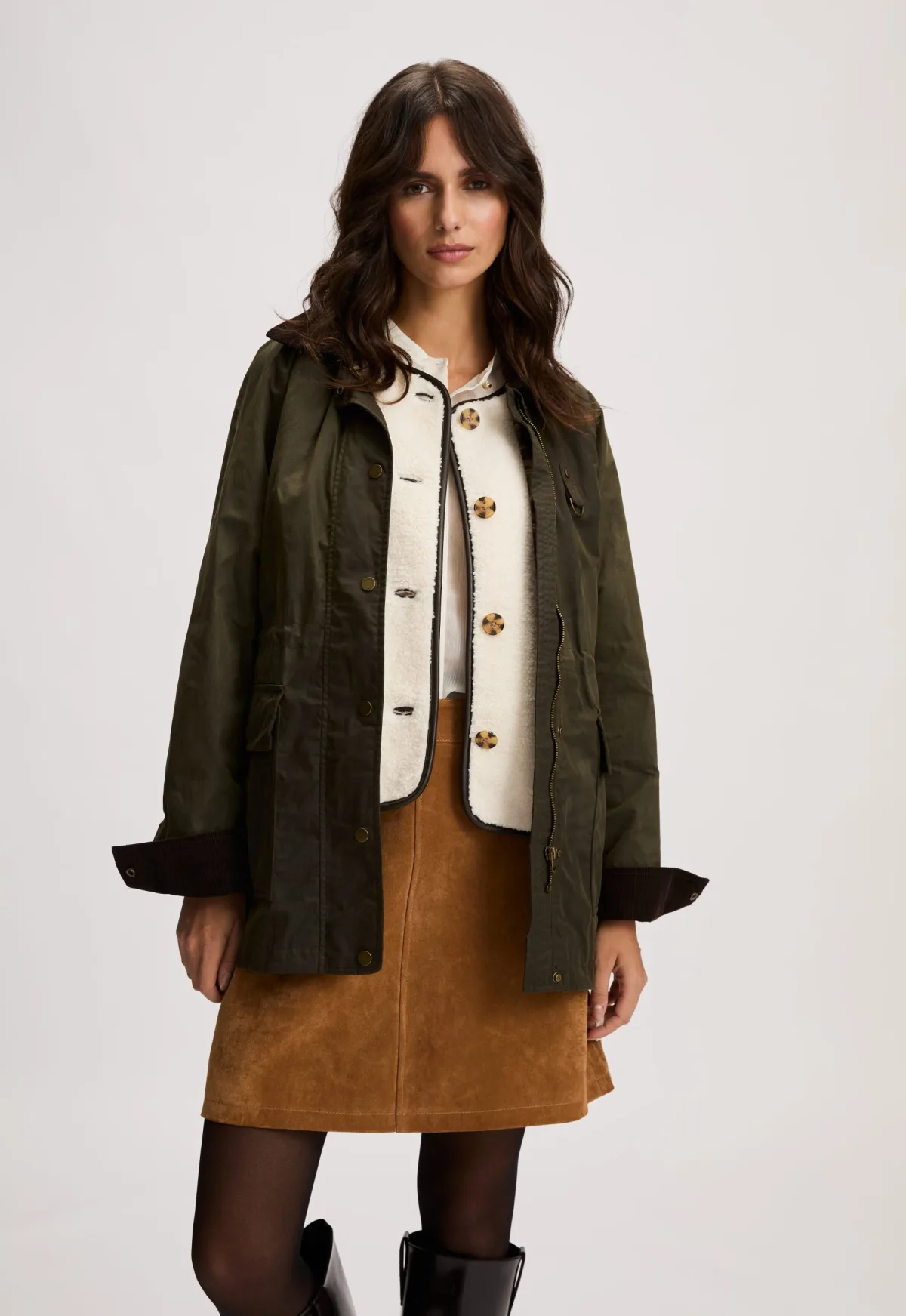 Dit is de Billie Jas van het merk Silvercreek. De jas is gemaakt van stevig, gewaxt katoen en heeft een klassieke corduroy kraag voor een tijdloze uitstraling. De binnenkant van de mouwen is eveneens afgewerkt met corduroy, zodat je ze stijlvol kunt oprollen. Het ontwerp heeft een zichtbare knoopsluiting gecombineerd met een rits en een split met knopen aan de achterkant voor extra bewegingsvrijheid. De jas is voorzien van opgestikte zakken met drukknoopsluiting en een binnenzak. Dankzij het elastiek in de taille kan de pasvorm naar wens worden geaccentueerd.