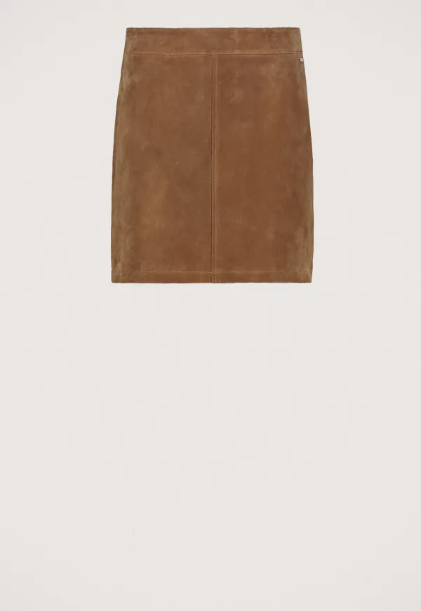 Dit is de Daye Rok van het merk Silvercreek. Deze rok heeft een elegante pasvorm en is gemaakt van suède, wat zorgt voor een luxueuze uitstraling. De ritssluiting aan de achterzijde maakt het aan- en uitdoen gemakkelijk en voegt een subtiel detail toe aan het geheel. Dankzij het korte ontwerp kan deze rok veelzijdig worden gedragen.