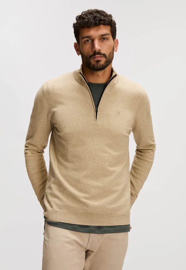 Dit is de Ease Trui van het merk Silvercreek. Deze trui heeft een comfortabele pasvorm en is gemaakt van een hoogwaardige katoen-nylon mix. De mooie ritssluiting aan de voorzijde en lange mouwen zorgen voor een stijlvol en veelzijdig ontwerp. Het jersey stitch patroon geeft de trui een tijdloze uitstraling.