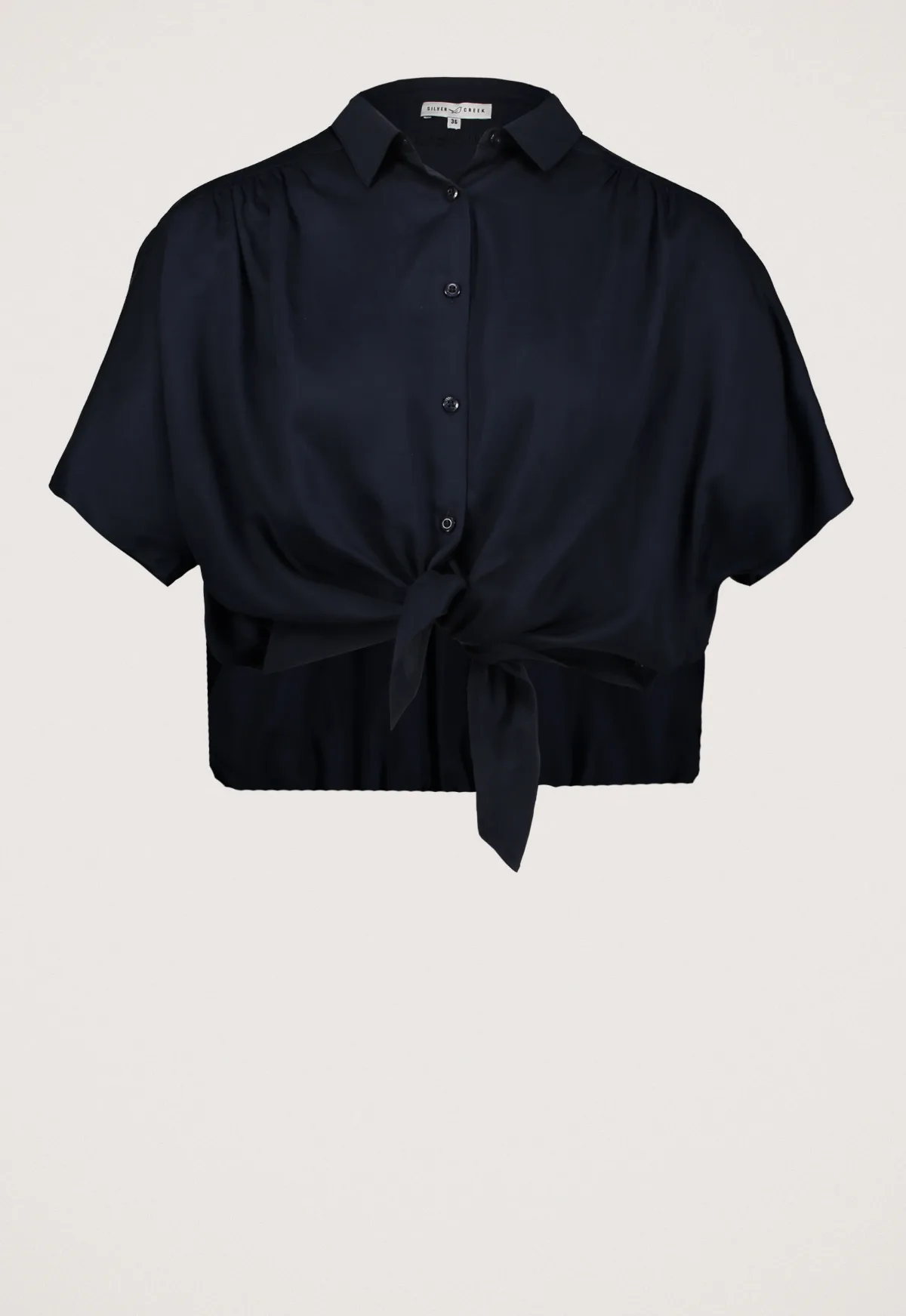 Dit is de Kilia blouse van het merk Silvercreek. Deze blouse is gemaakt van 100% lyocell, wat zorgt voor een heerlijk zacht en ademend draagcomfort. De blouse is voorzien van aangeknipte korte mouwen, een elegante knoopsluiting en een geknoopte onderkant. Aan de achterkant heeft de blouse een elastische band voor een subtiel accent.