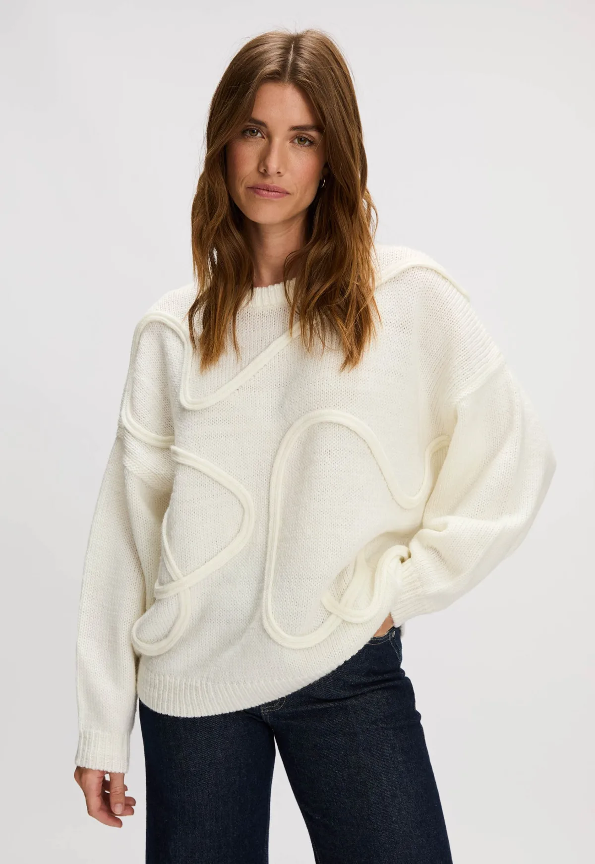 Dit is de Paivi Trui van het merk Silvercreek. Deze trui heeft een oversized pasvorm. De opgestikte sierkoorden geven de trui een uniek accent. Kenmerkende rib boordjes zijn te vinden aan de mouwen, de onderkant en de nek, wat zorgt voor een extra comfortabele pasvorm.