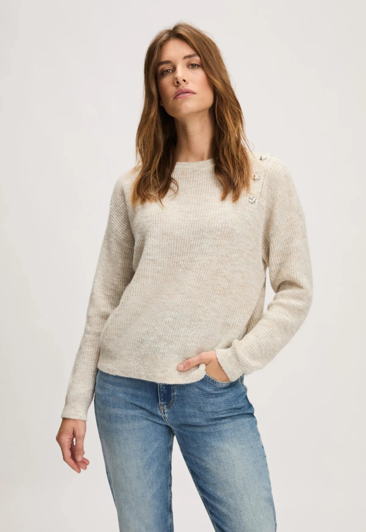 Dit is de Philo trui van het merk Silvercreek. De trui heeft verlaagde schoudernaden, een ronde hals en lange mouwen. Opvallend detail is de knoopsluiting op de schouder.