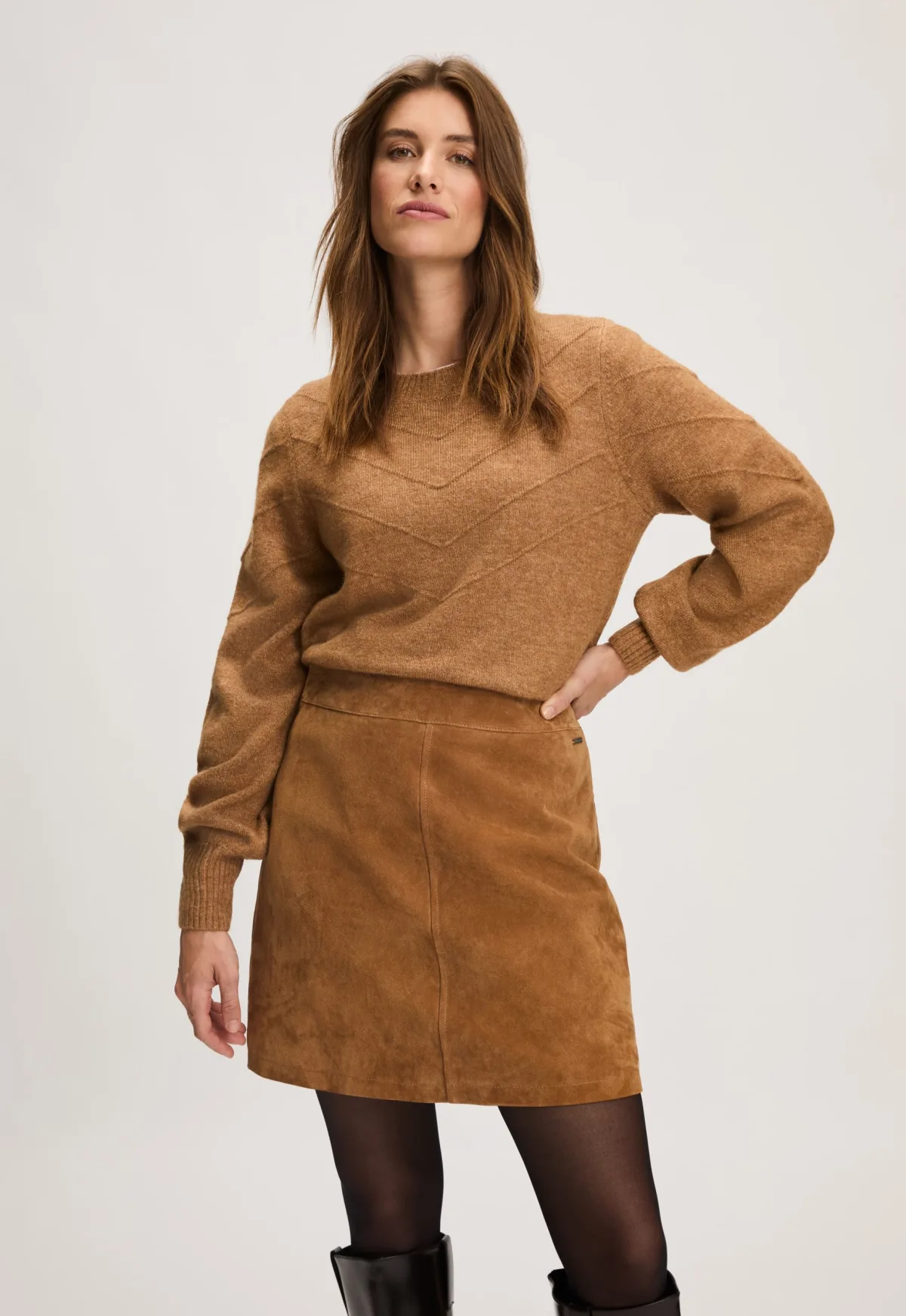 Dit is de Pleun Trui van het merk Silvercreek. Deze gebreide trui heeft een ronde hals en is voor zien van ribgebreide boorden voor goede aansluiting.