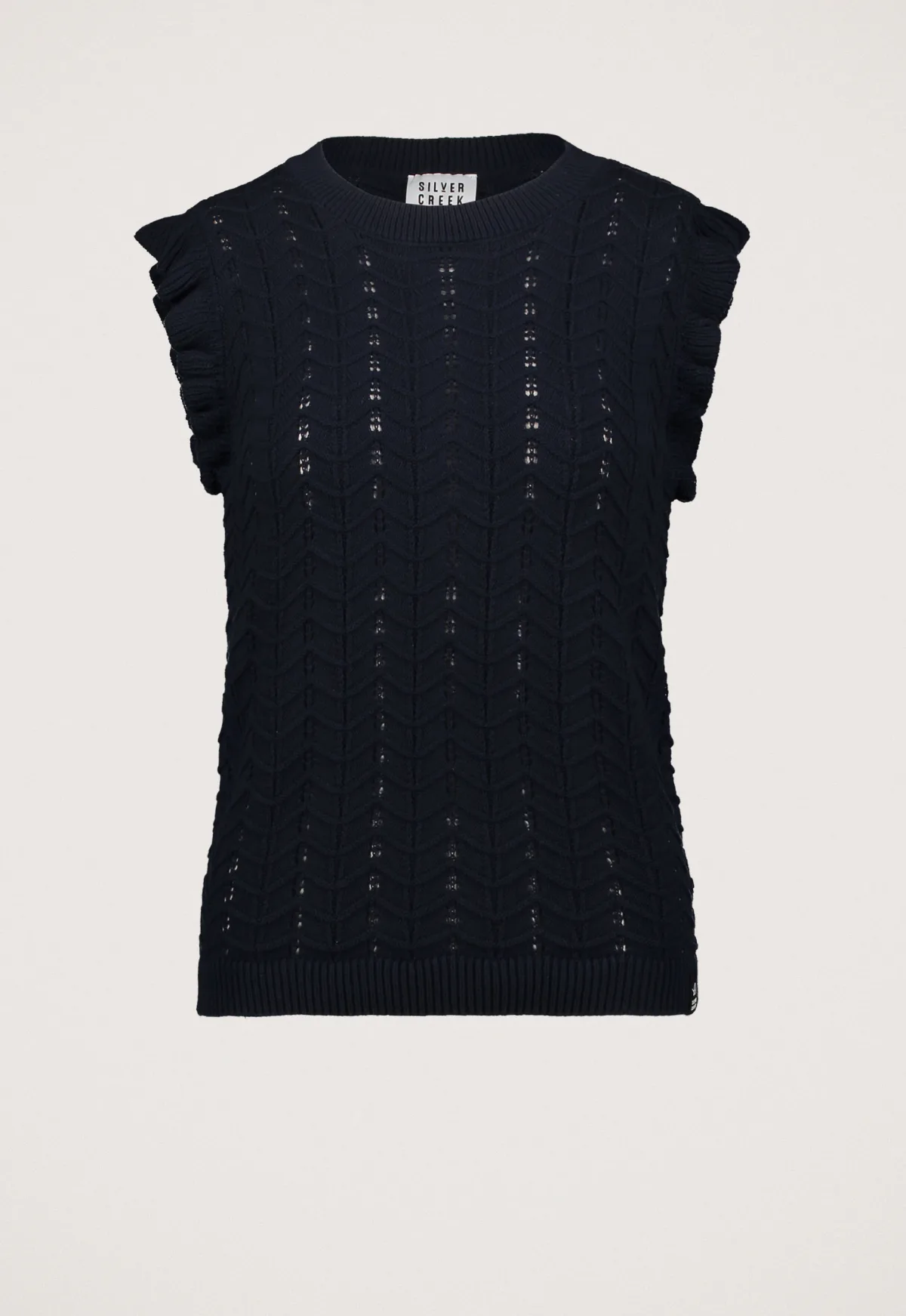 Dit is de Presley Spencer van het merk Silvercreek. Deze Spencer heeft een regular pasvorm en is gemaakt van 100% katoen, wat zorgt voor een comfortabel en prettig draaggevoel. De gebreide top is ontworpen met een ruffle op de schouder voor een subtiele, stijlvolle touch.
