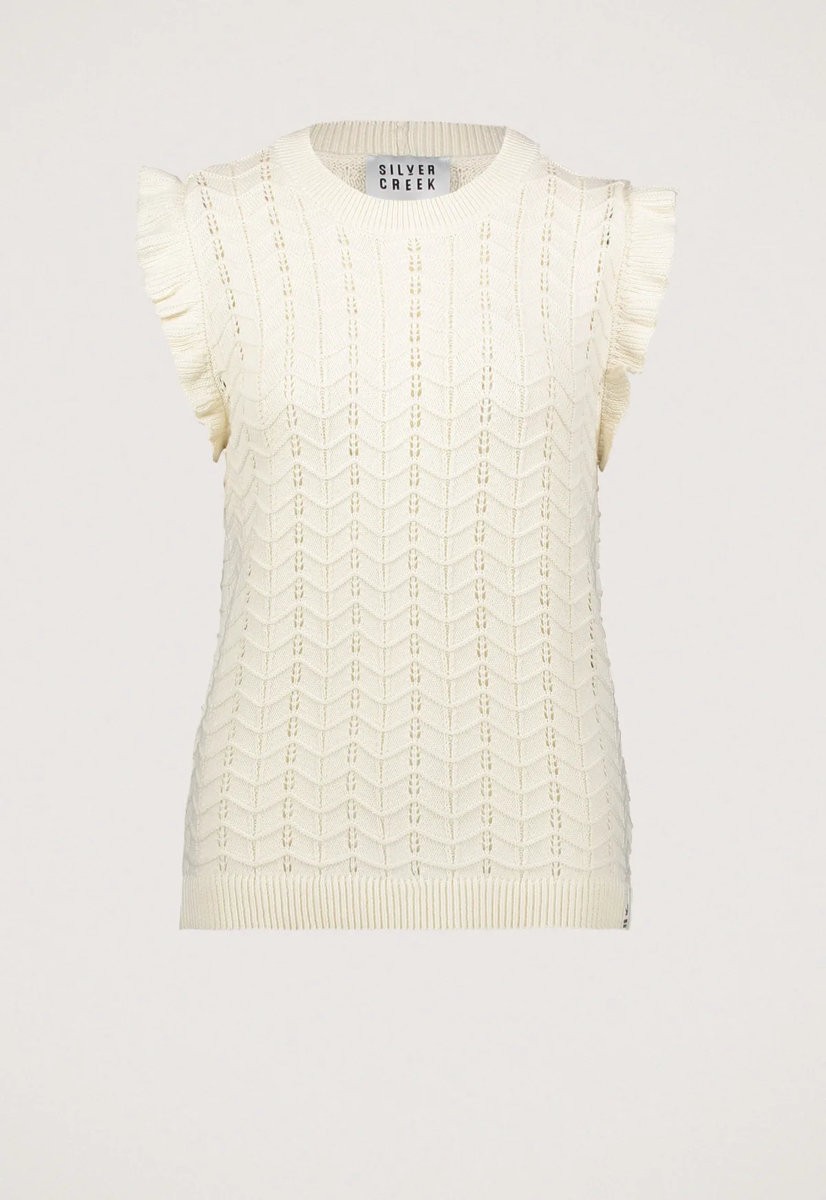 Dit is de Presley Spencer van het merk Silvercreek. Deze Spencer heeft een regular pasvorm en is gemaakt van 100% katoen, wat zorgt voor een comfortabel en prettig draaggevoel. De gebreide top is ontworpen met een ruffle op de schouder voor een subtiele, stijlvolle touch.