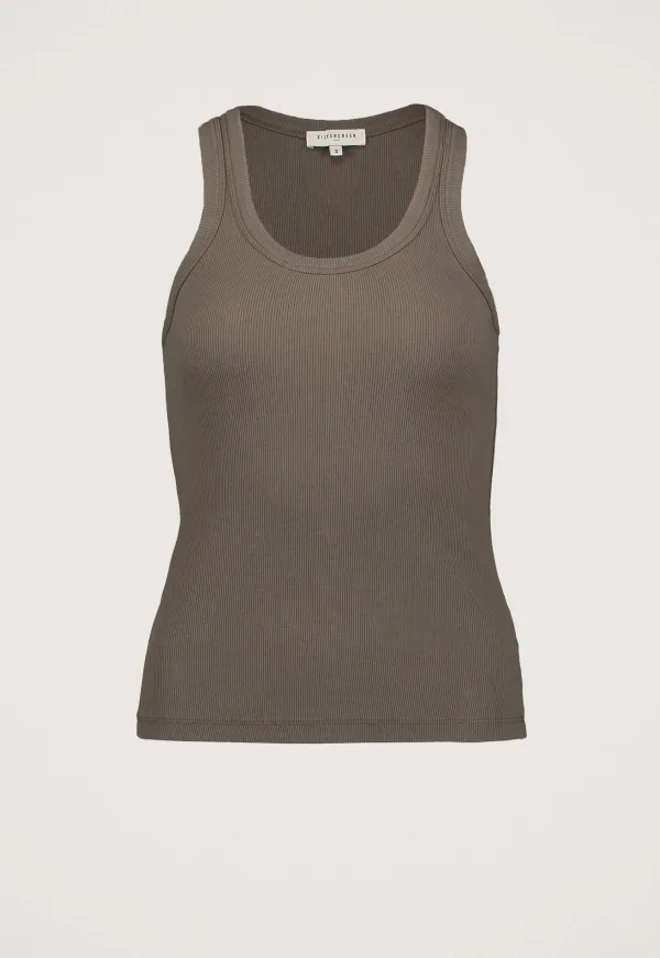 Dit is de Sony Top van het merk Silvercreek. Deze rib gebreide top heeft een lage ronde hals. Op de achterkant een ton sur ton silvercreek logo.
