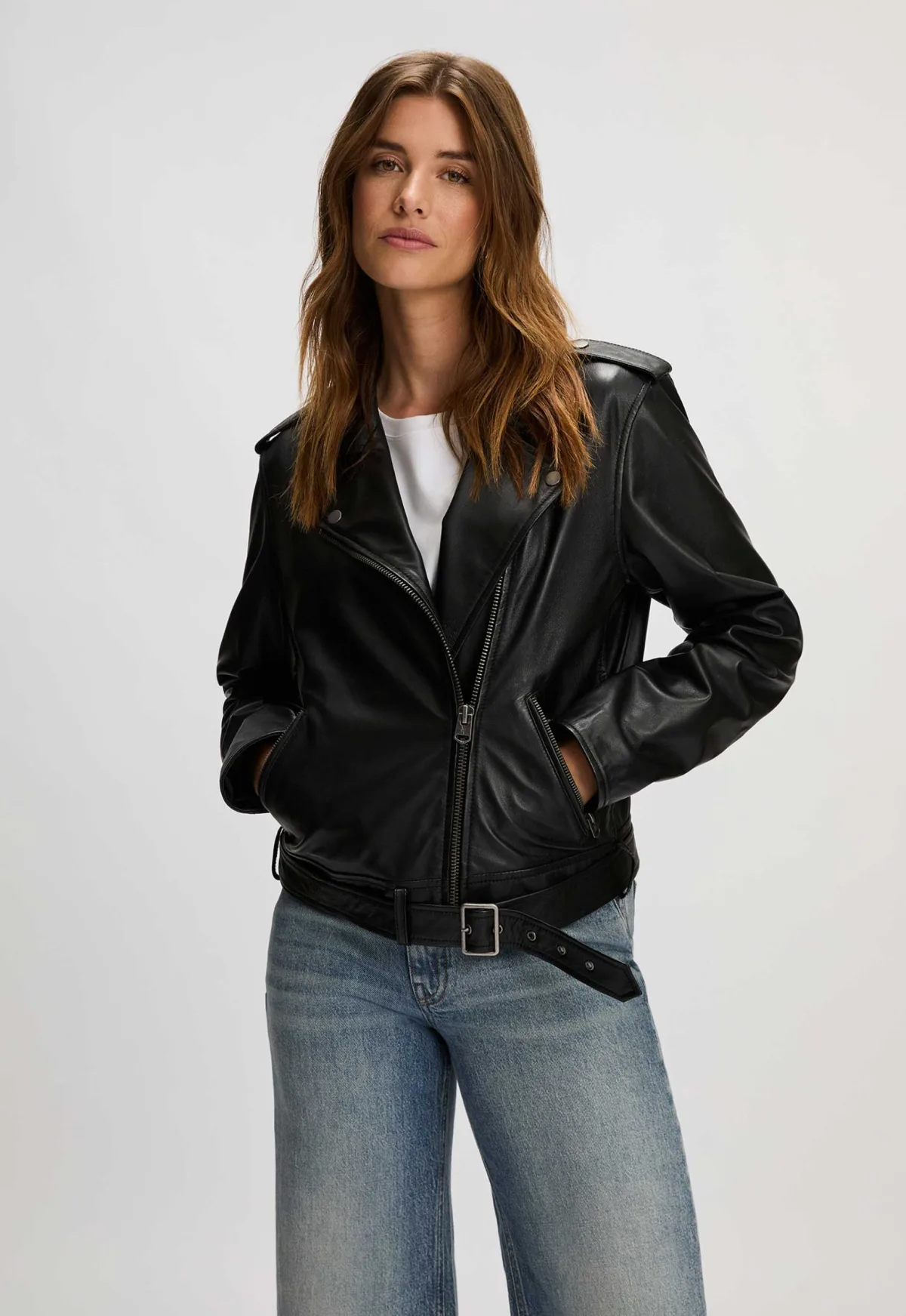 Dit is de Tansu Biker Jas is van het merk Silvercreek. Deze jas is van een mooie soepele PU leer kwaliteit. De jas heeft epauletten op de schouders en een riempje aan de onderkant.