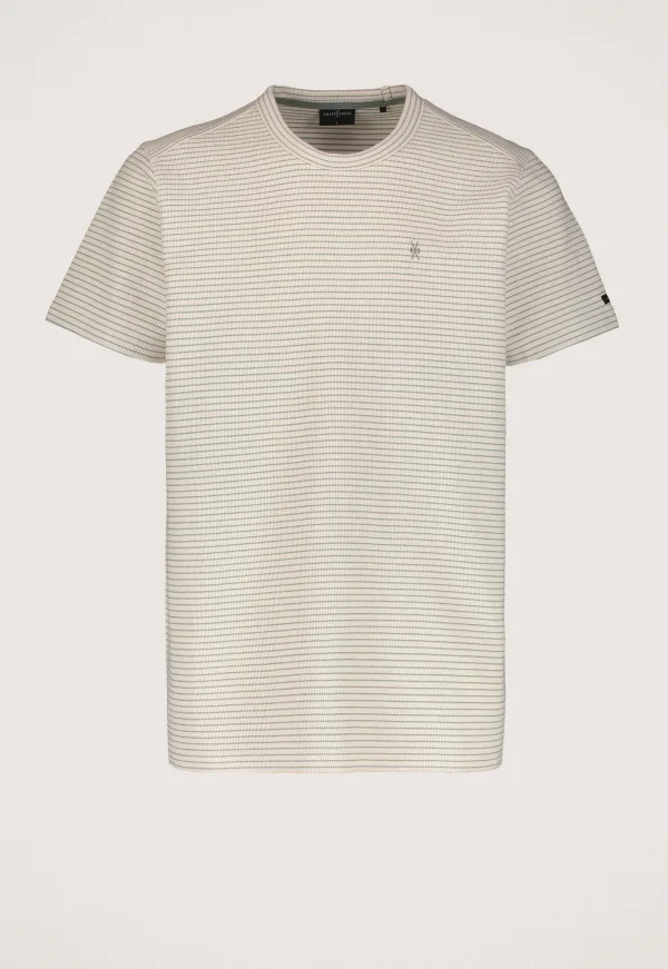 Dit is het Tobias T-shirt van het merk Silvercreek. Dit T-shirt heeft een comfortabele pasvorm en is gemaakt van 100% katoen, wat zorgt voor een zachte en ademende kwaliteit. Het ontwerp heeft een stijlvol horizontaal streeppatroon en een klassieke ronde hals.