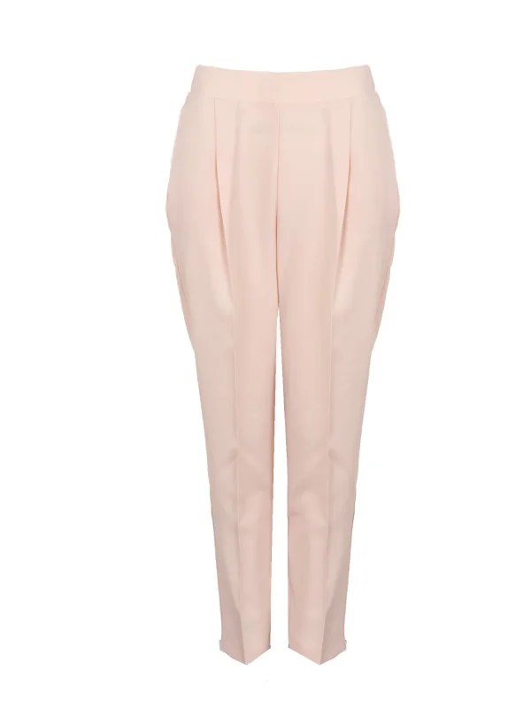 Getailleerde snit Licht taps toelopende benen Gemiddelde stijging Benen met plooi Elastische tailleband achter Steekzakken Aangegeven zak op de achterkant Gemaakt van hoogwaardige stof met stretch Gemaakt in Italië