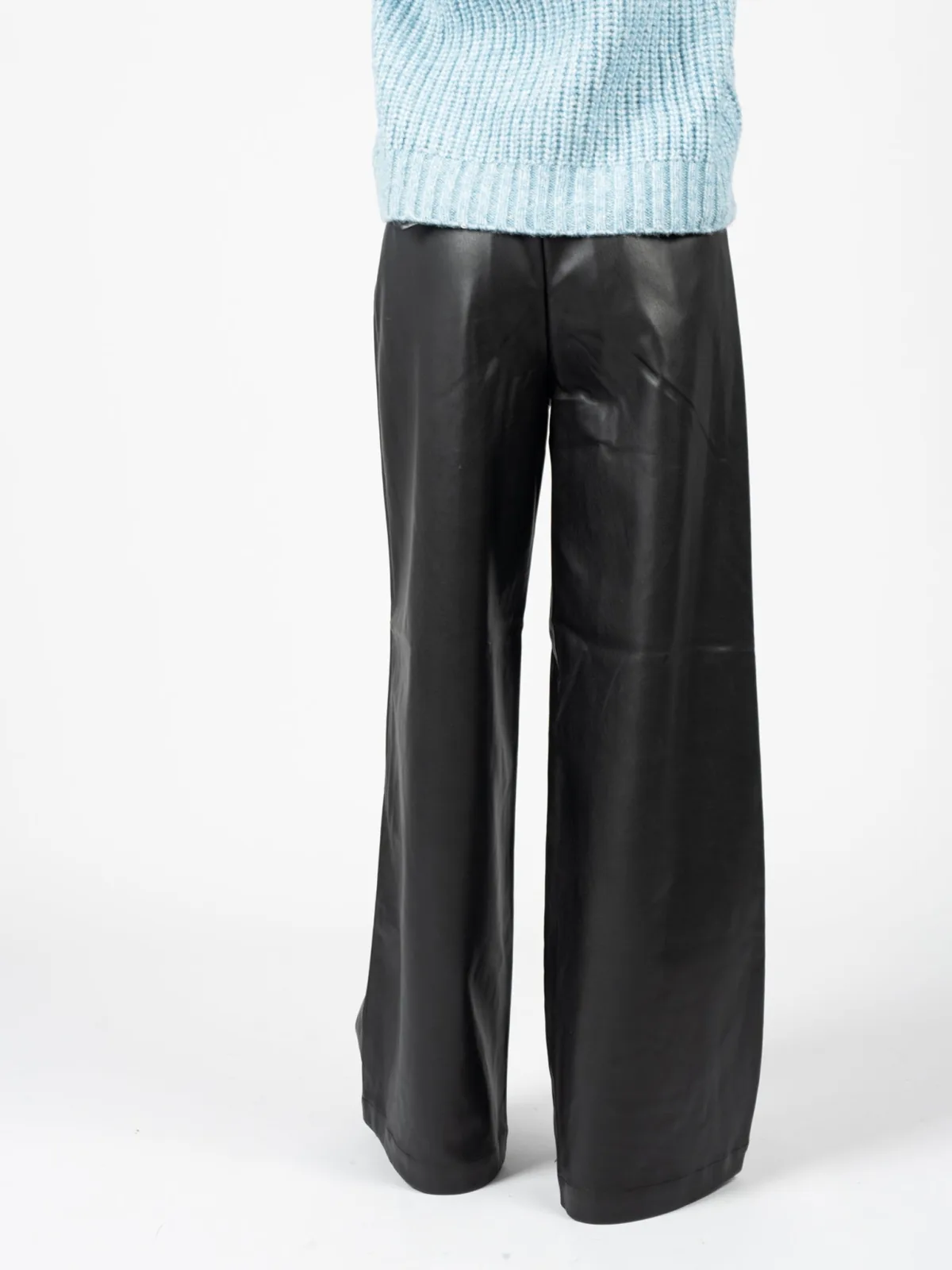 Losse pasvorm Licht uitlopende pijpen Hoge tailleband Sluit met een rits en knoop Twee zakken aan de achterkant Gemaakt van hoogwaardig kunstleer