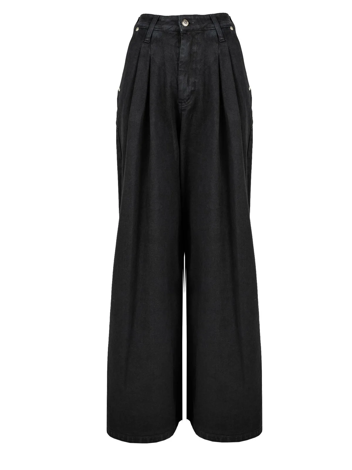 Los model Uitlopende broekspijpen Hoge taille Met rits- en knoopsluiting Twee zakken aan de voorkant, twee imitatiezakken aan de achterkant Gemaakt van hoogwaardige stof Gemaakt in Italië