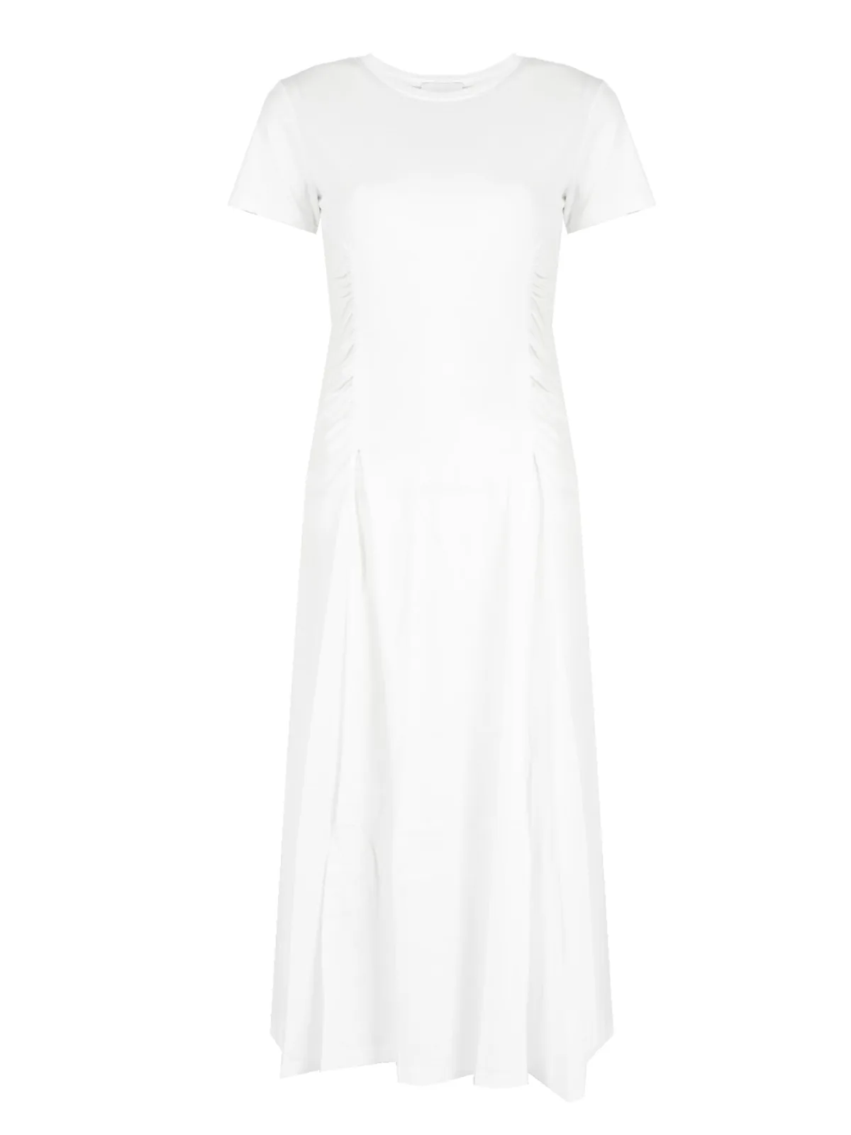 Getailleerde pasvorm Maxi lengte Los vallende zoom Met ronde halslijn Met korte mouwen Decoratieve plooien aan de zijkanten Gemaakt van hoogwaardig katoen Gemaakt in Italië